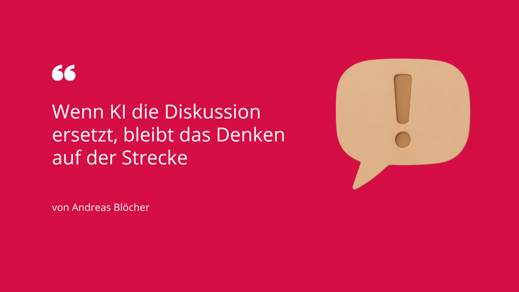Künstliche Intelligenz darf niemals zur Entwertung menschlicher Beiträge führen. Sie soll uns dienen, nicht ersetzen. Und sie darf auf keinen Fall die Fähigkeit untergraben, im Gespräch zu lernen, zu wachsen und gemeinsam klüger zu werden.